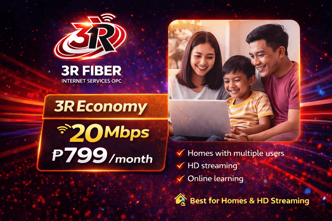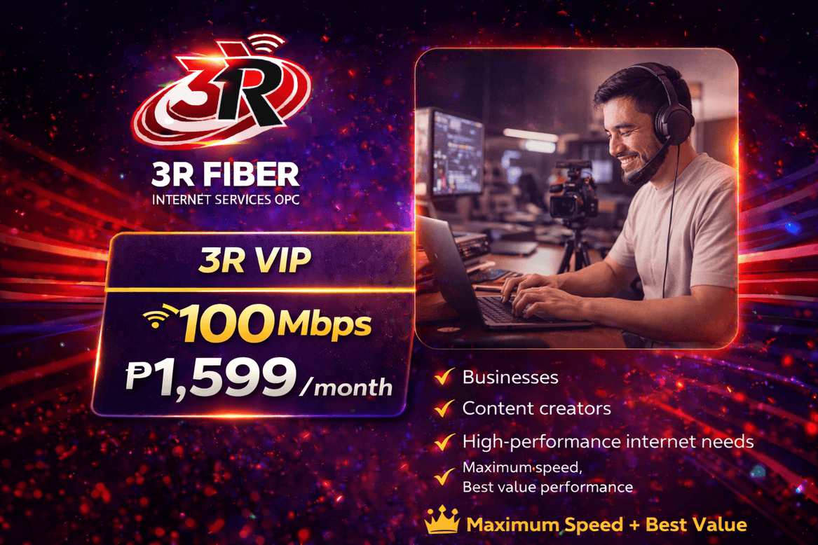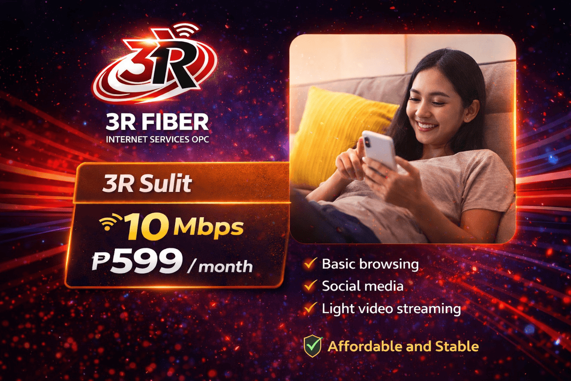 3R Fiber provides high-speed fiber internet designed to deliver fast, stable, and reliable connectivity. The actual speed depends on the plan you subscribe to, but our packages are optimized for streaming, online work, gaming, and multiple devices.